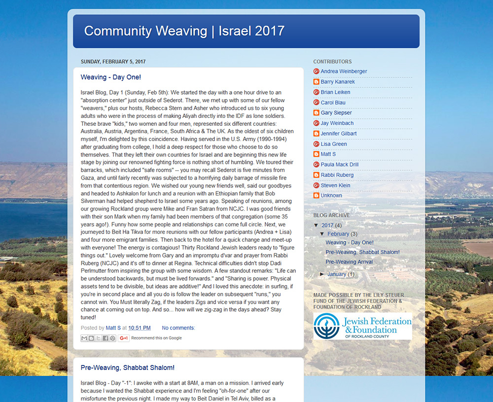 Read the blog to keep up with the group's experiences in Israel! Check the blog daily: www.fedcommunityweaving.