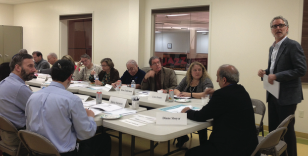 Members of the RJI Synagogue Leadership Council discuss the results of the first phase of research at a meeting on November 12.